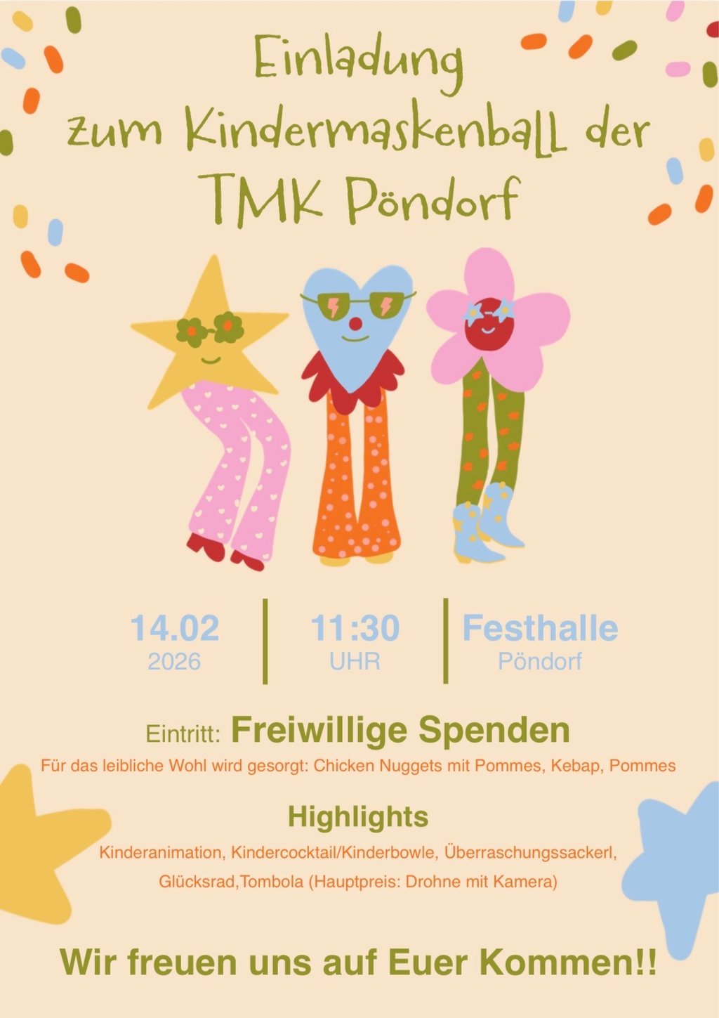 Am Samstag den 01.03.2025 durften wir zum dritten Mal den Kindermaskenball in der Pöndorfer Festhalle veranstalten. Für ein abwechslungsreiches Programm, bei dem die Kinder mitmachen konnten, sorgten Alexandra Wörndl und Martin Schinagl.
